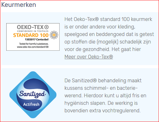 De Sanitized® behandeling maakt het kussen schimmel- en bacteriewerend voor fris en hygiënisch slapen.