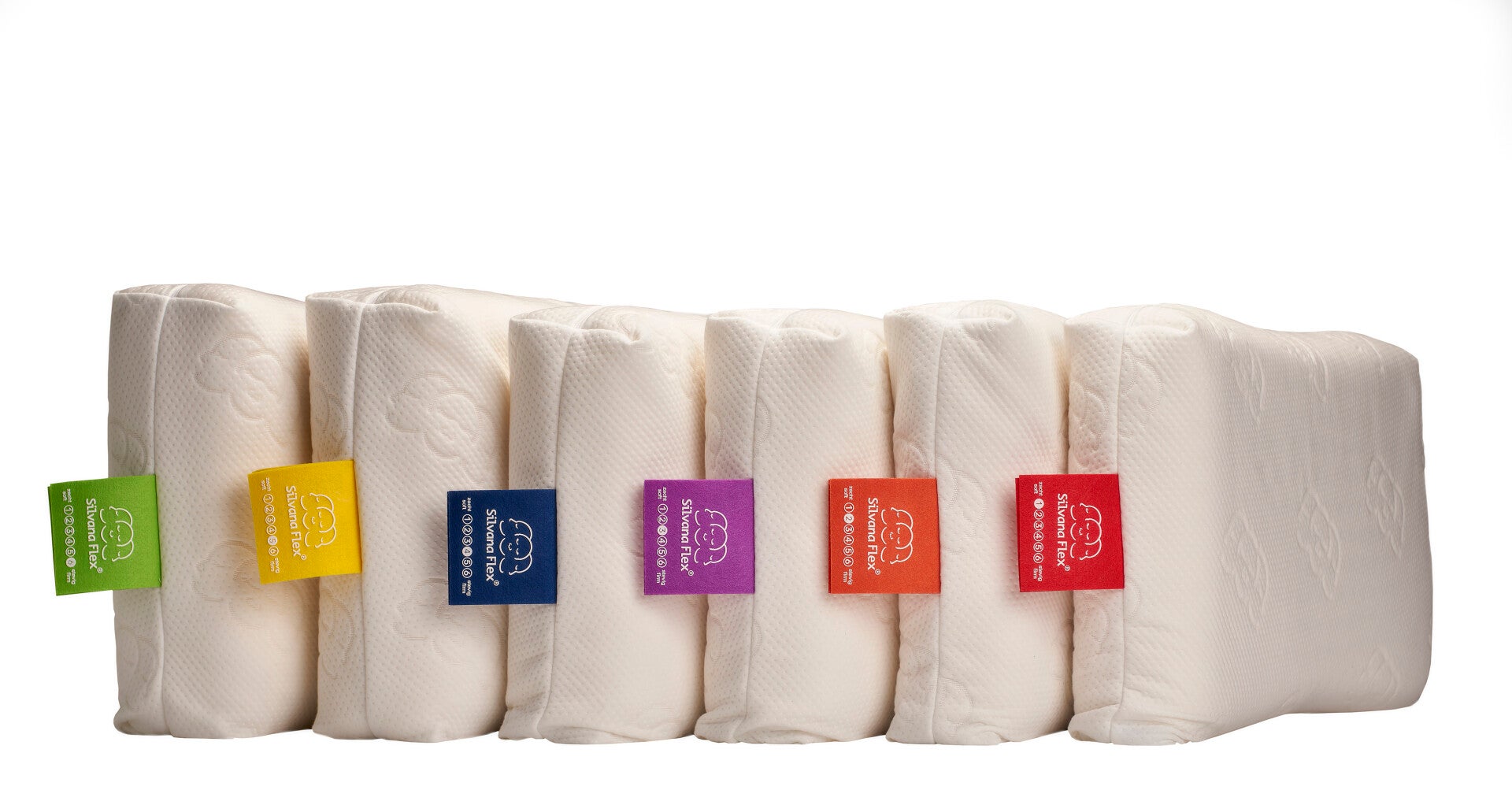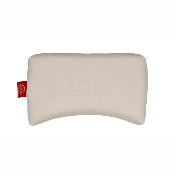 Een laag en zacht ergonomisch gevormd latex hoofdkussen.