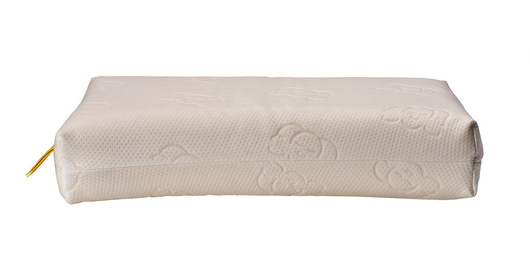 Een laag en zacht ergonomisch gevormd latex hoofdkussen.