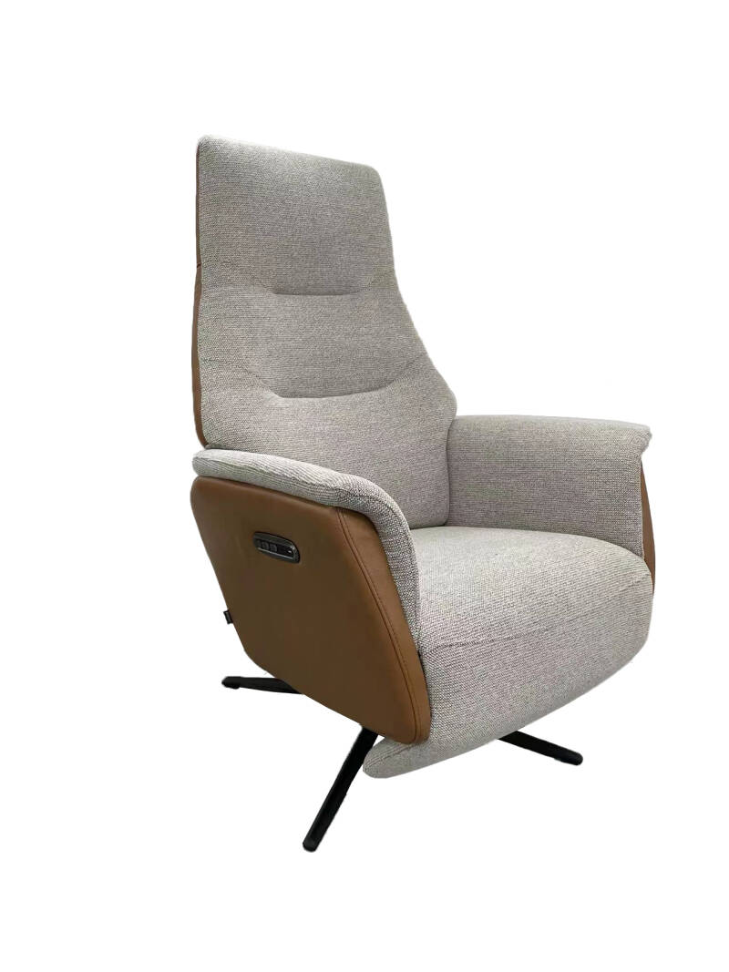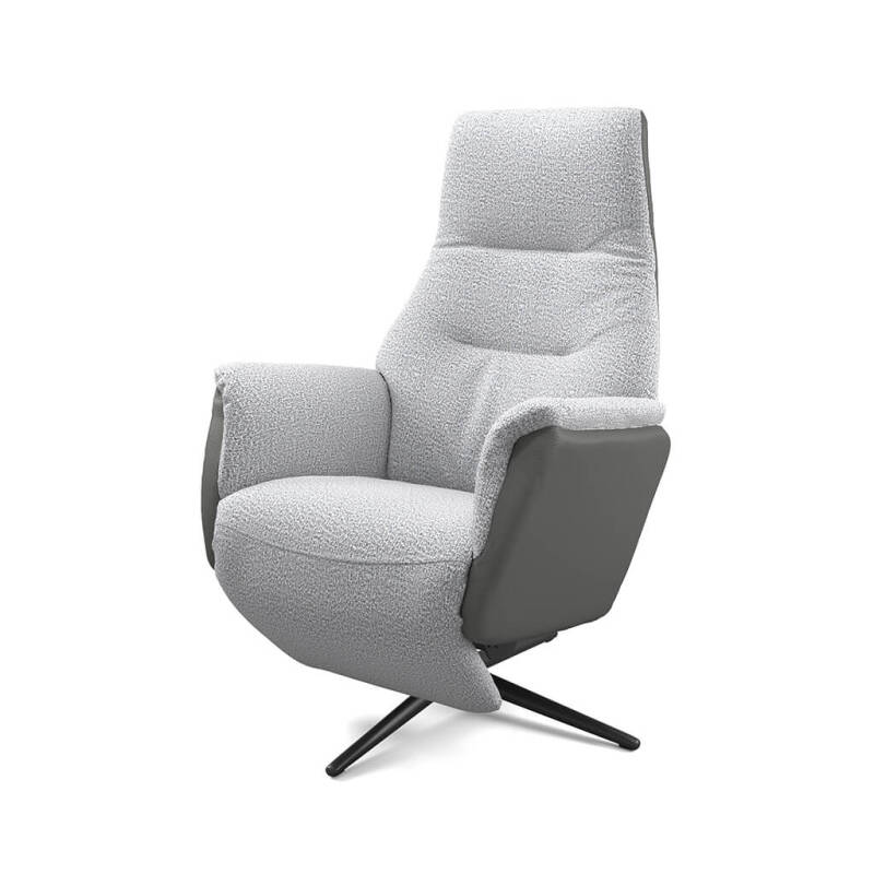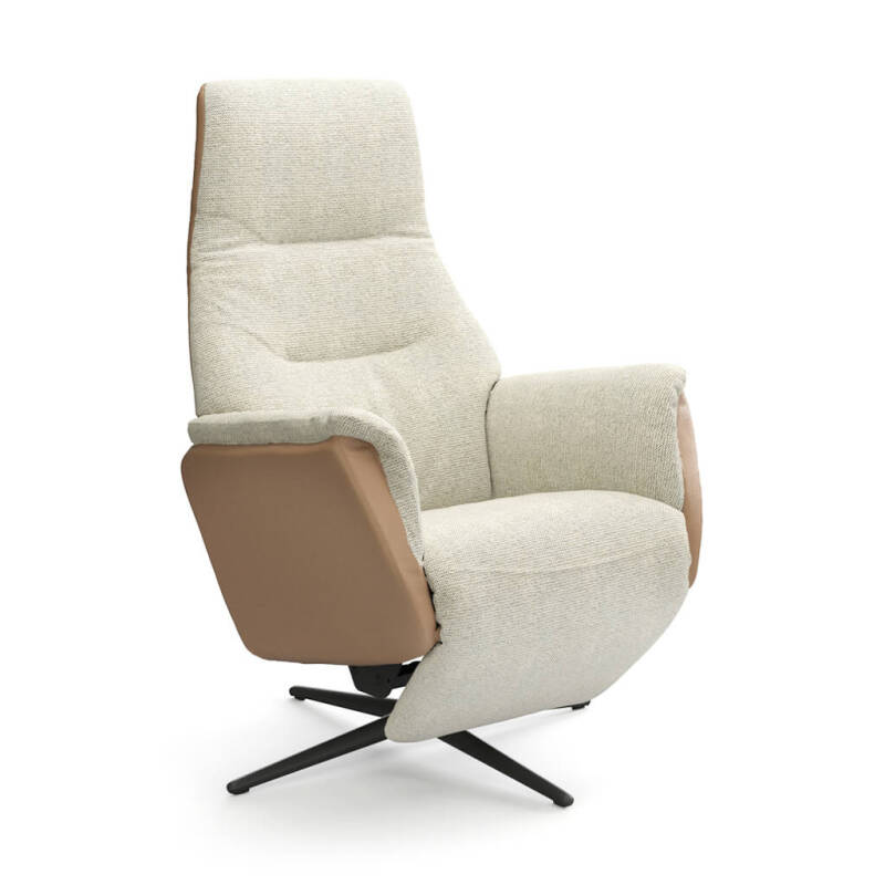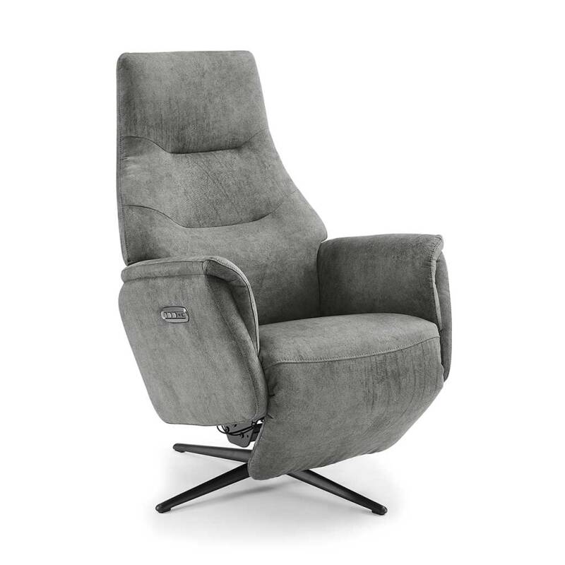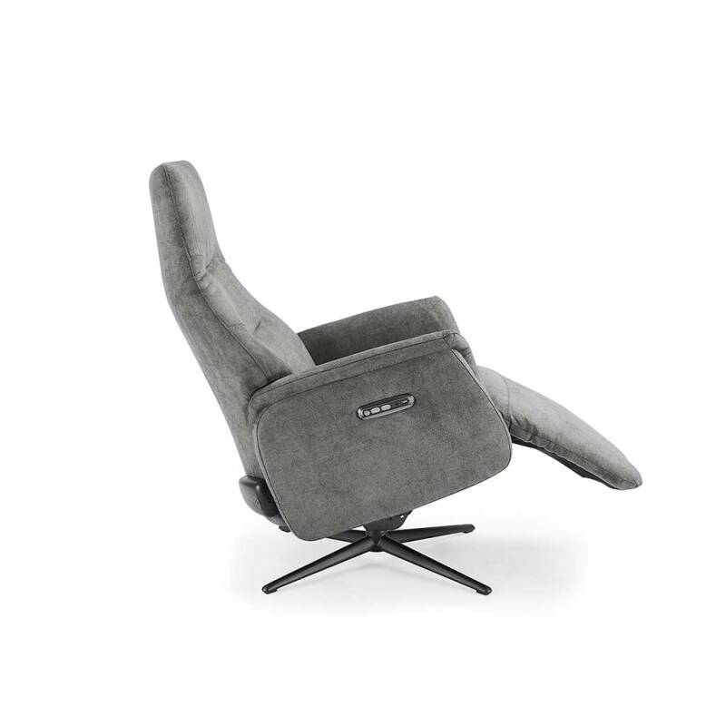 Modulax met 2 motoren verstelbaar. Zitgedeelte (8° kanteling), rugleuning en beensteun elektrisch verstelbaar (2 motoren). Hoofdsteun manueel verstelbaar (standaard) of elektrisch (+ € 150). 4-Teens draaivoet.