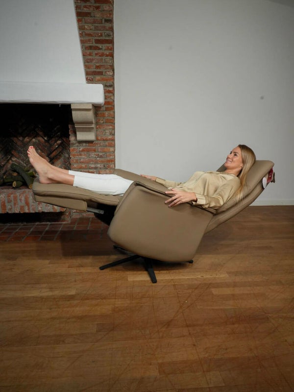 De nieuwste relaxtechnologie aan uitzonderlijke prijzen! Zitgedeelte (8°), rugleuning en beensteun elektrisch verstelbaar (3 motoren) tot hartbalans-positie. Hoofdsteun manueel verstelbaar. 5-Teens draaivoet.
