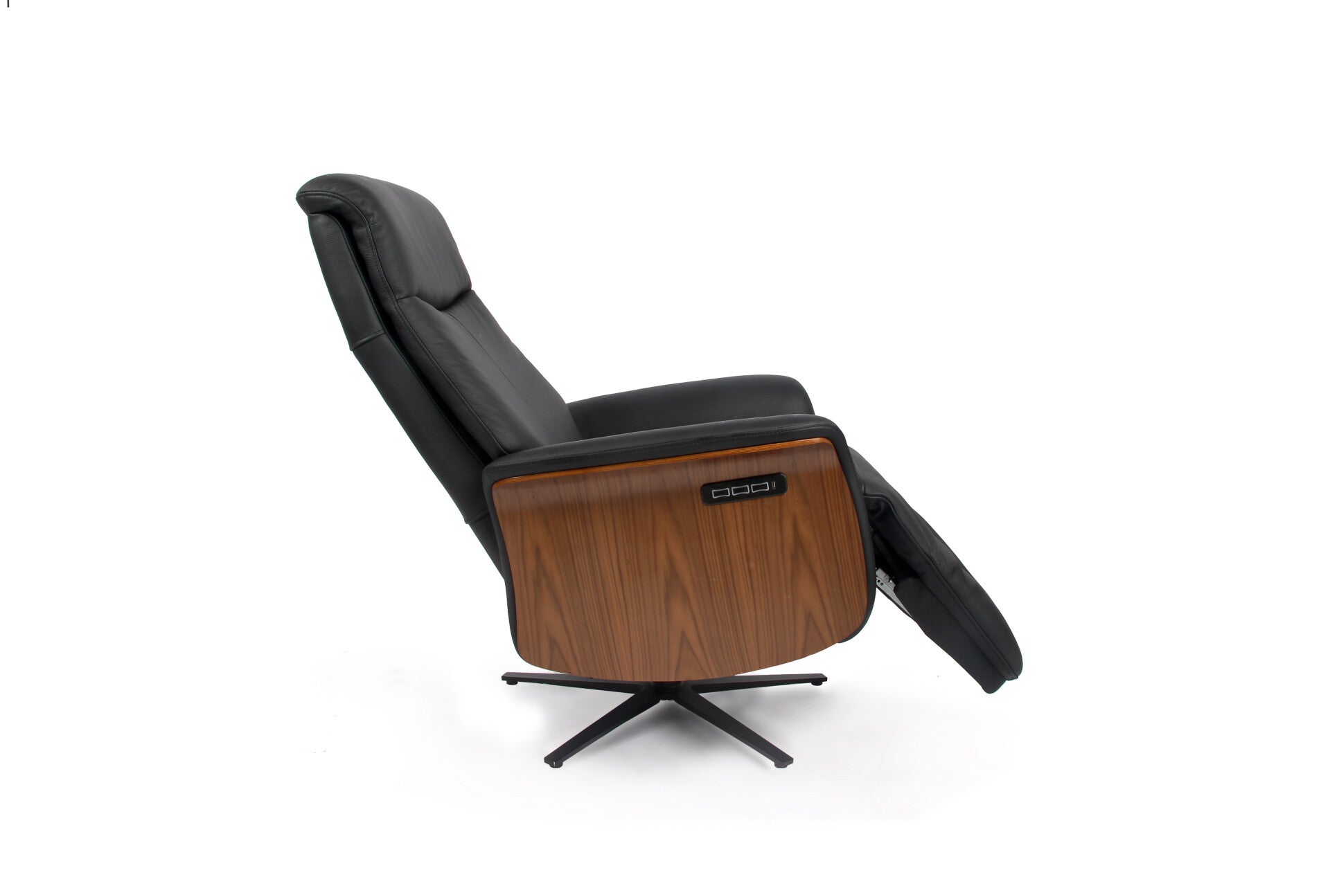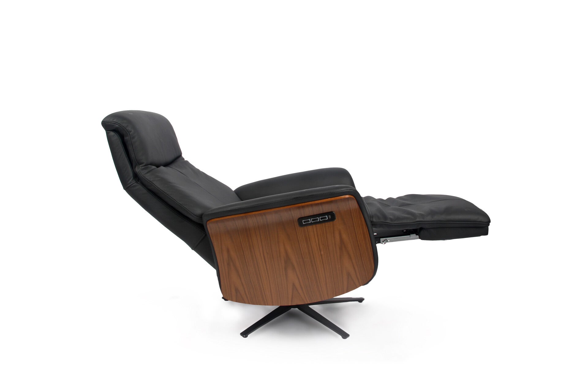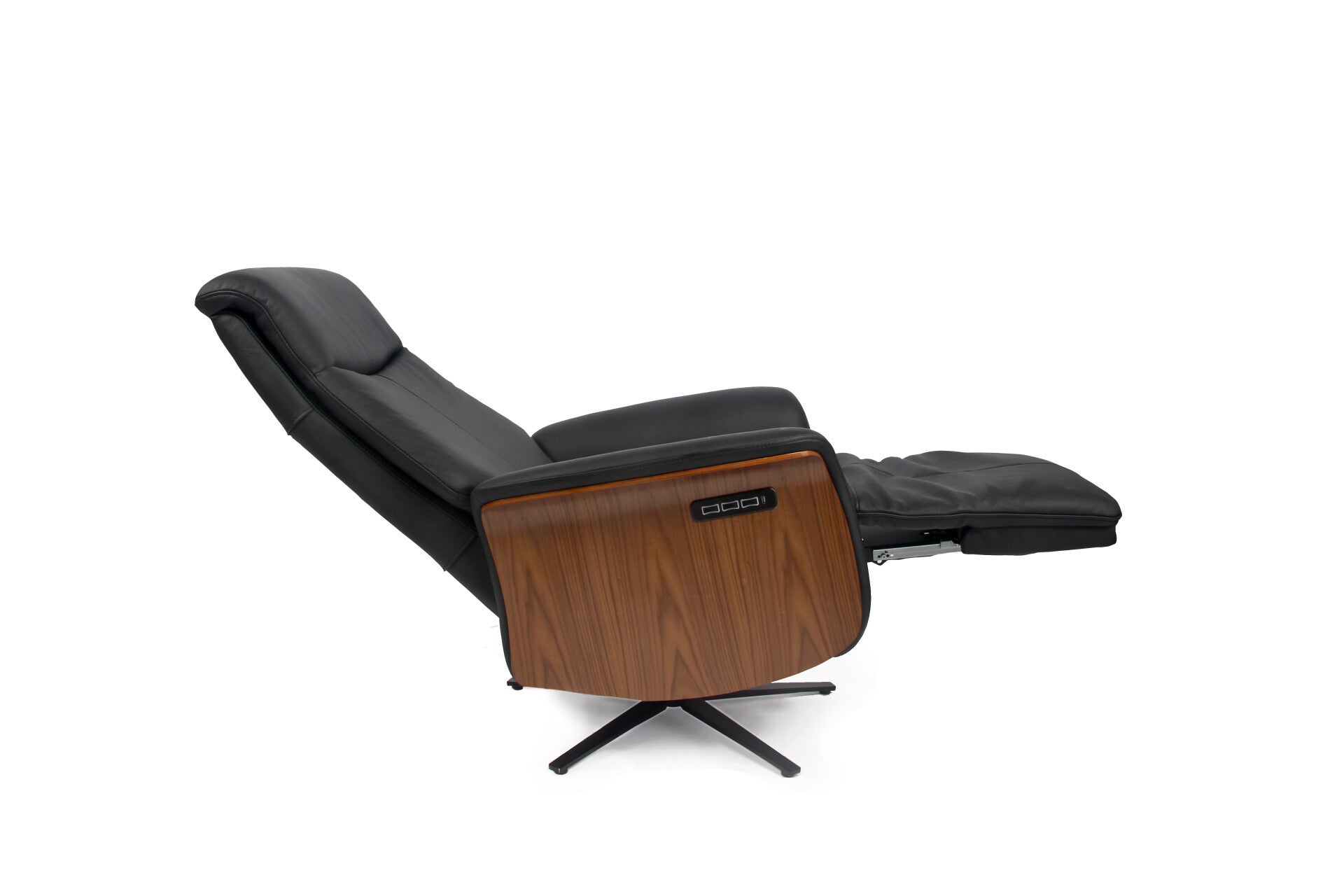 Zitgedeelte (8°), rugleuning en beensteun elektrisch verstelbaar (3 motoren) tot hartbalans-positie. Hoofdsteun manueel verstelbaar. 5-Teens draaivoet.