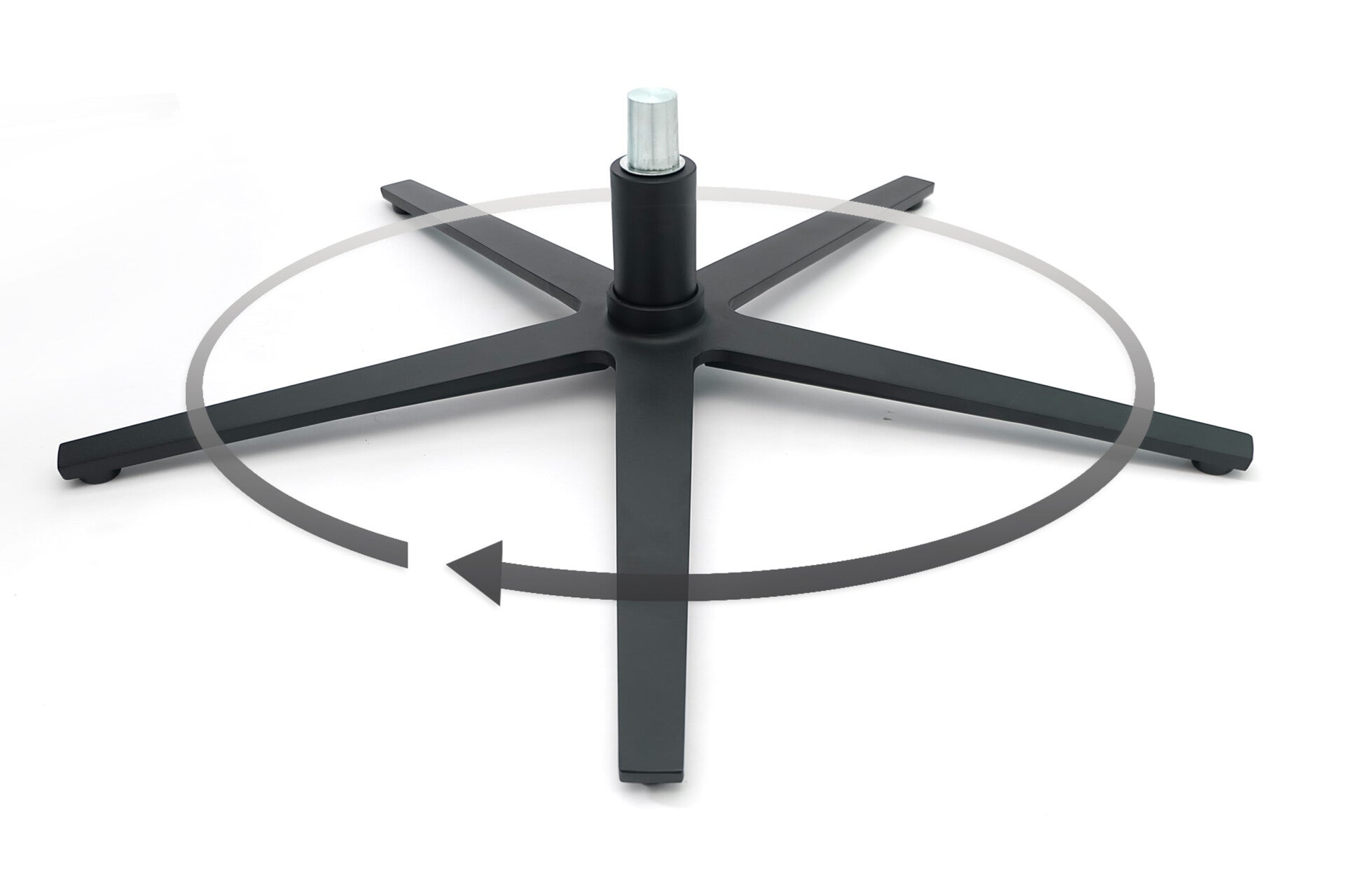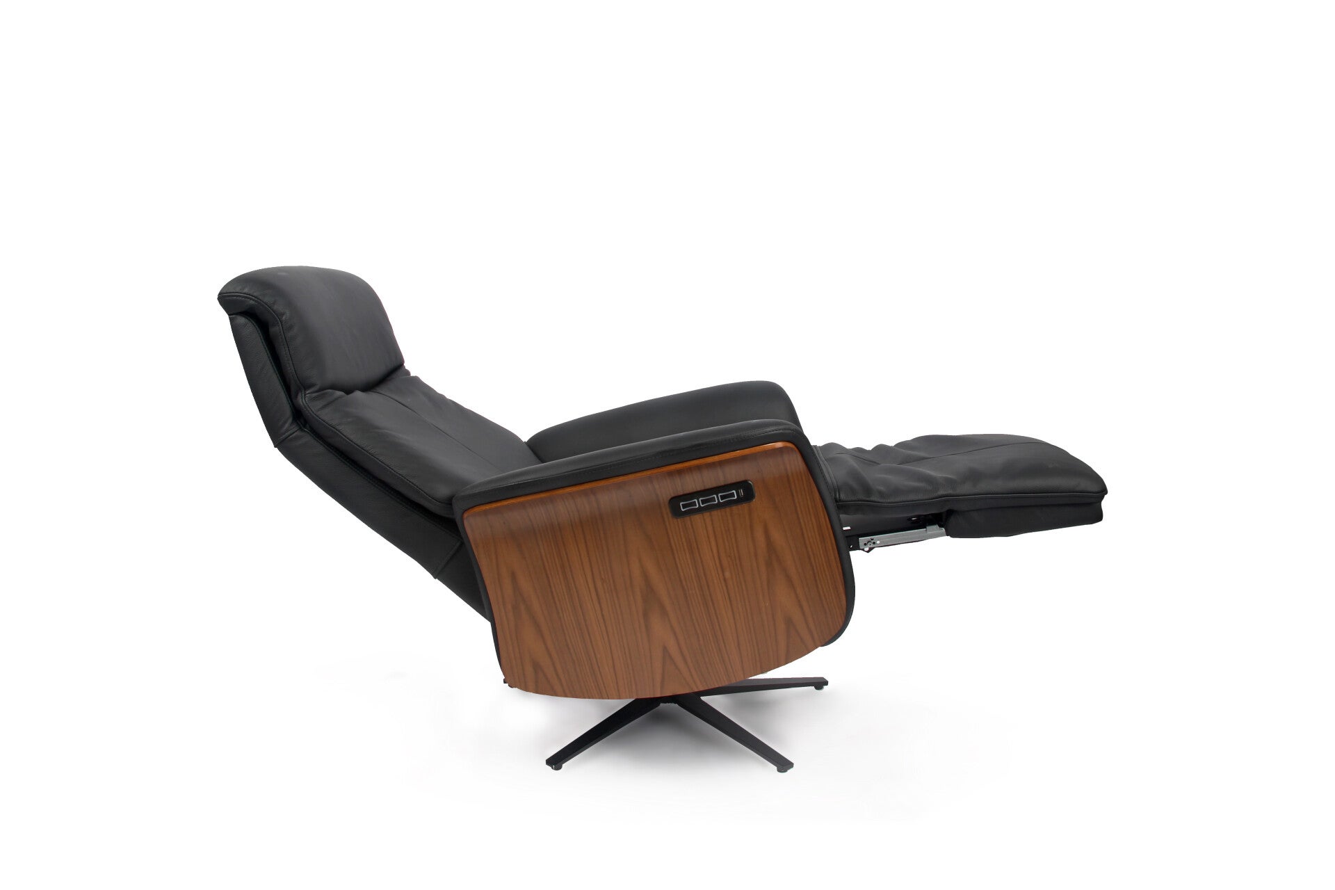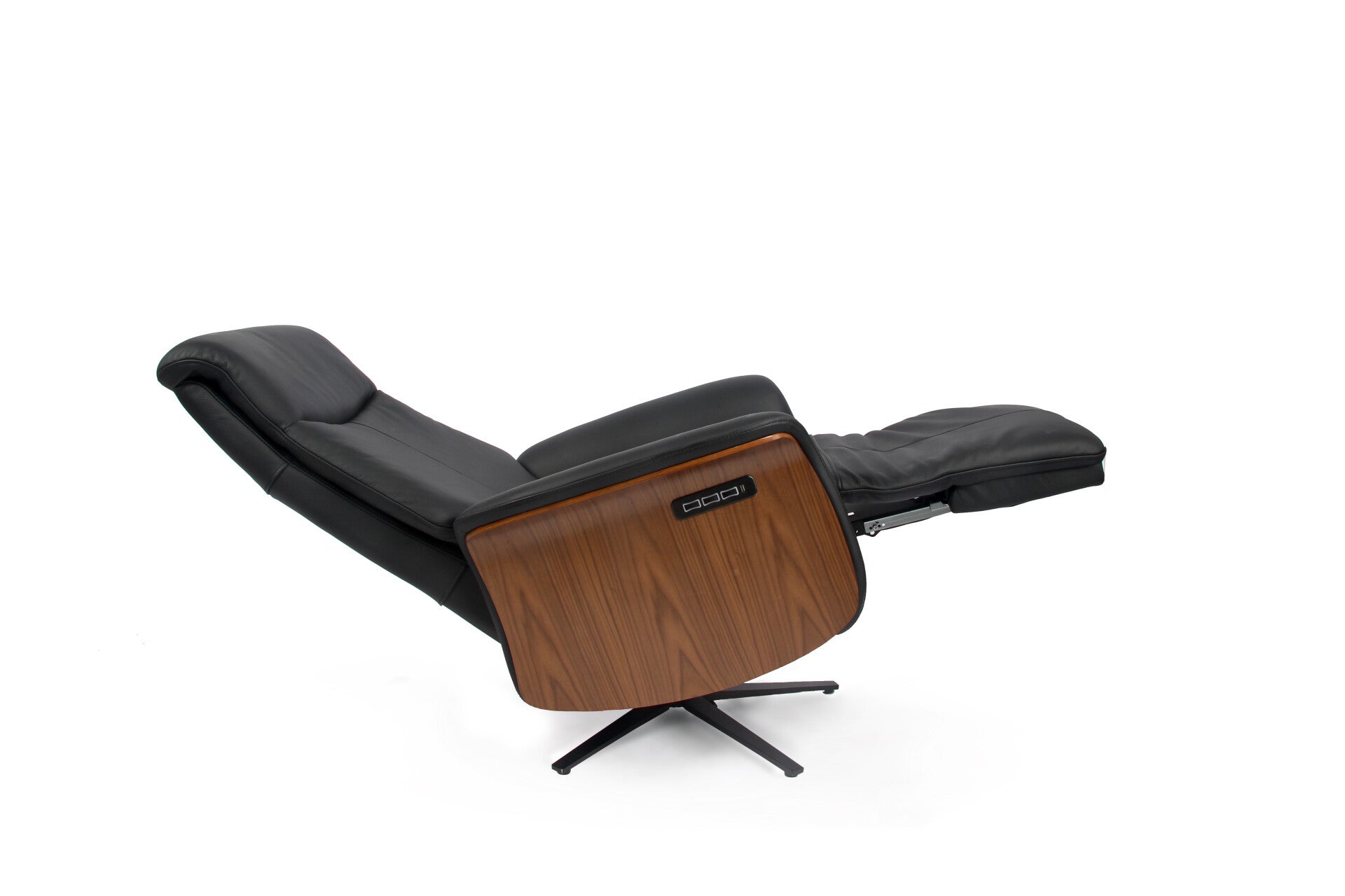 Zitgedeelte (8°), rugleuning en beensteun elektrisch verstelbaar (3 motoren) tot hartbalans-positie. Hoofdsteun manueel verstelbaar. 5-Teens draaivoet.