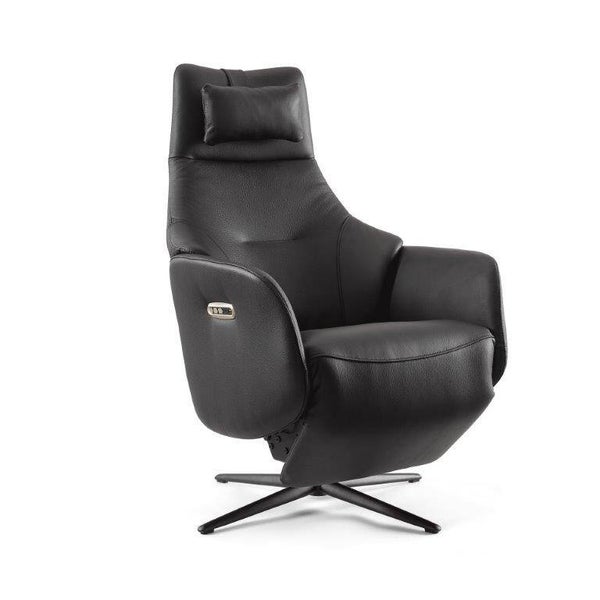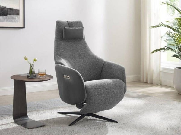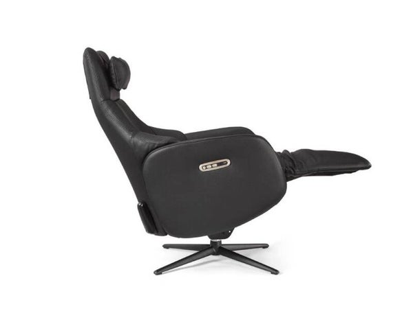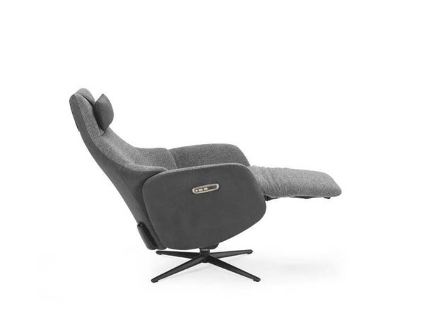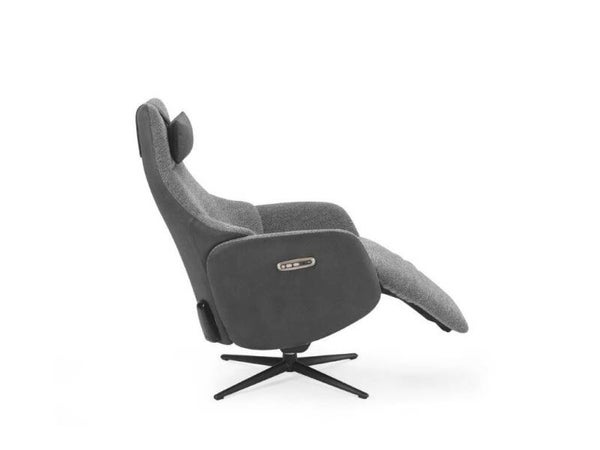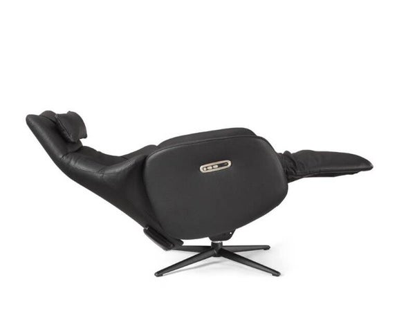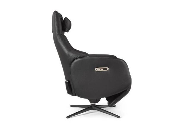 Modulax met 2 motoren verstelbaar. Zitgedeelte (8° kanteling), rugleuning en beensteun elektrisch verstelbaar (2 motoren). Hoofdsteun manueel verstelbaar. 4-Teens draaivoet.